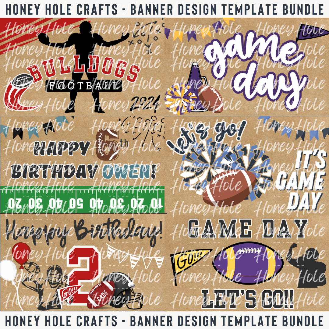 Includes football themed designs for game days, team support, and football themed birthdays!